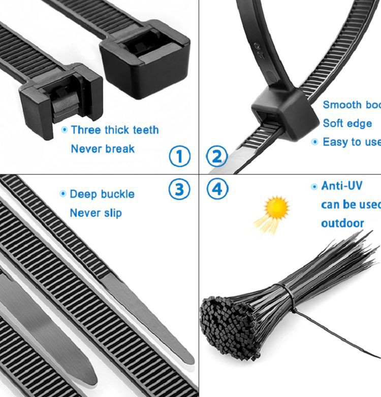 Application : utilisé pour regrouper des câbles, des fils, des conduits, des plantes ou d'autres choses dans l'industrie électrique et électronique, éclairage, matériel, pharmaceutique, chimique, informatique, machines, agriculture, etc.